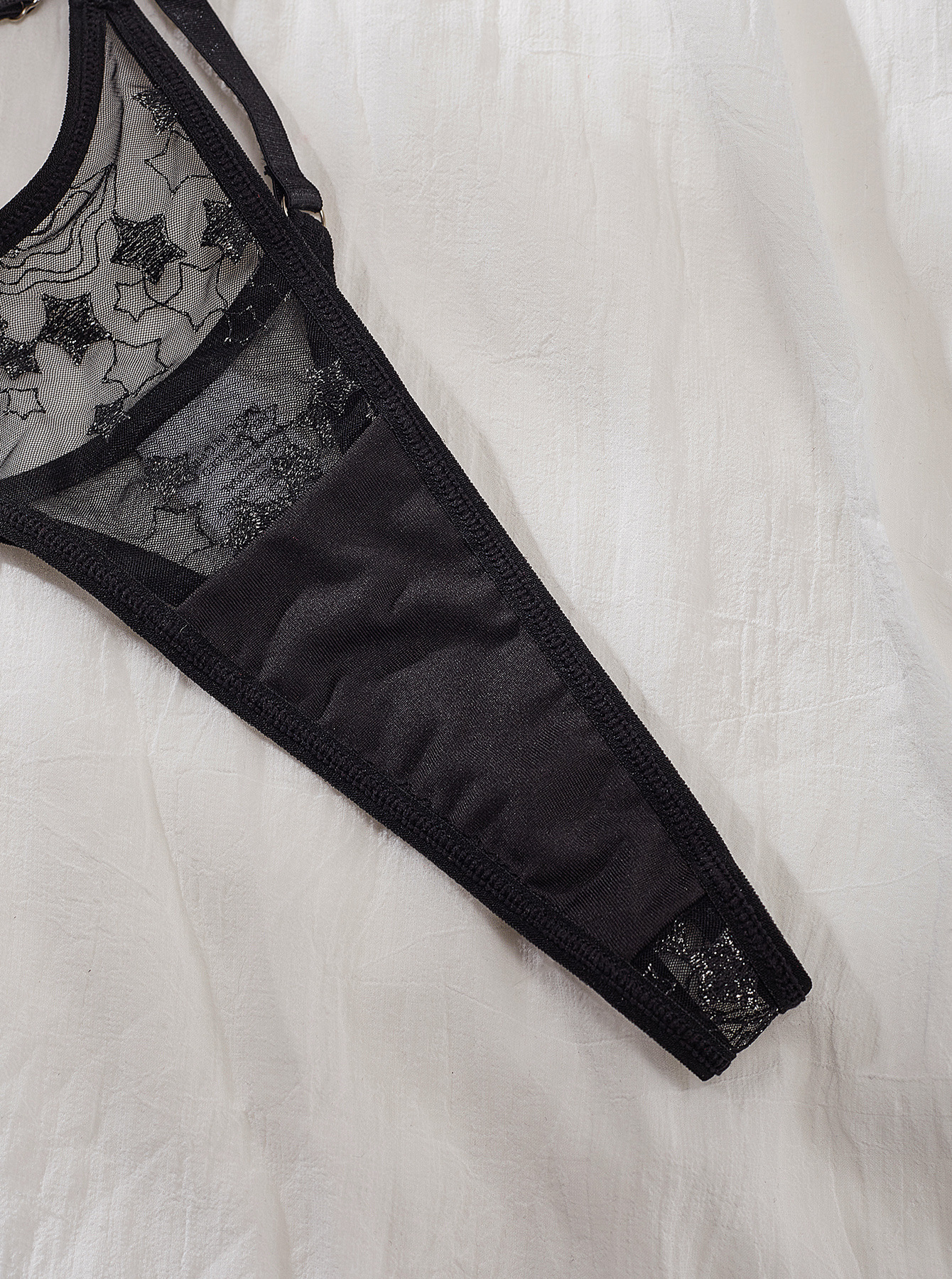 Be the first to review “Bra Set Complex Craft Starry Embroidery Hollow Out Cutout Chain Sexy Underwear Four Piece Set”